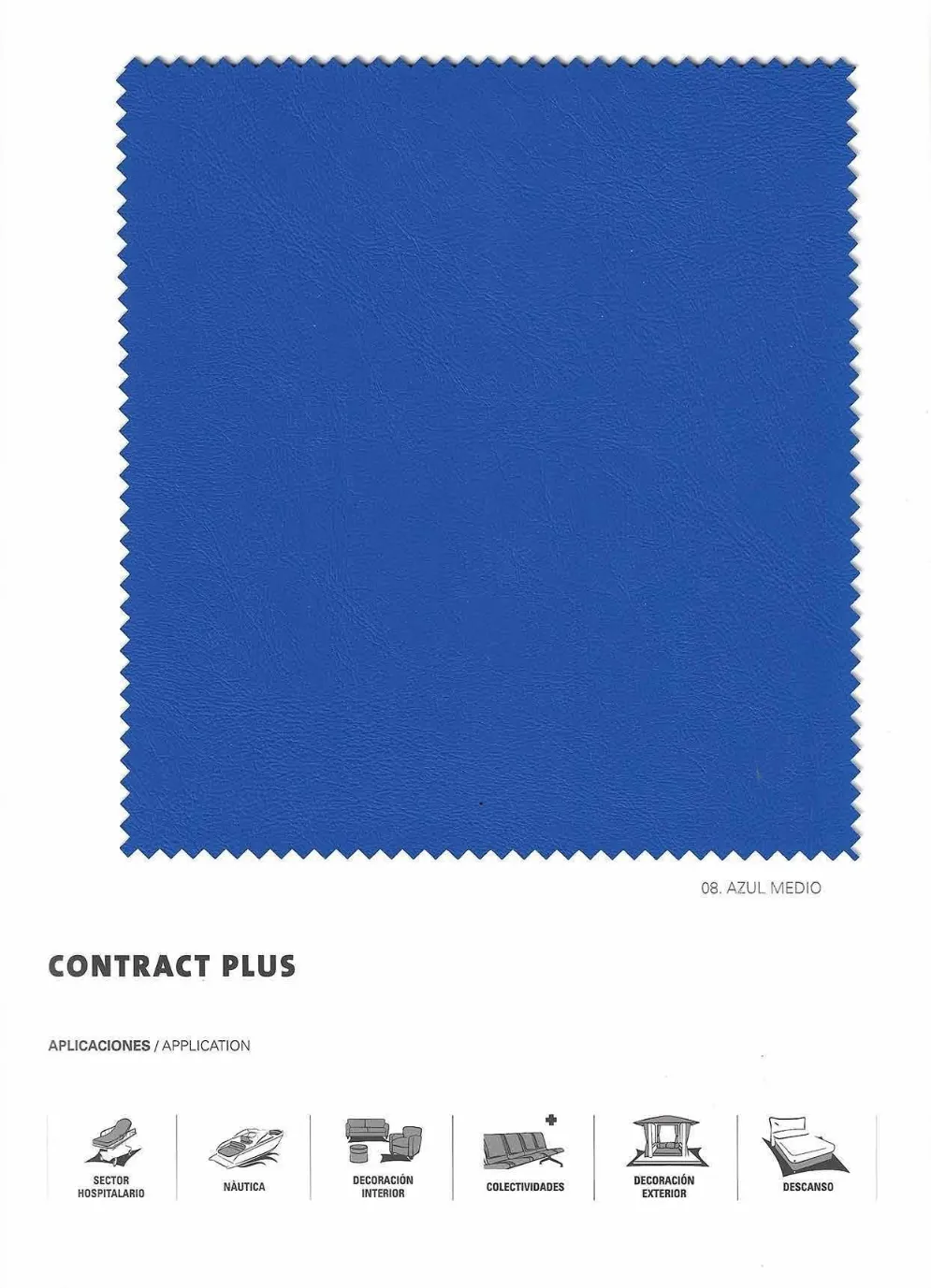 Sintético para multitud de utilidades, ignifugo, impermeable y antibacteriano. Puede usarse en exteriores.